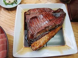 今回もリンは一品多く注文。金目の煮付け。大きい。みんなにお裾分け 美味しい。